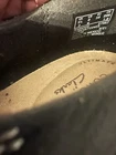 These are women's black leather loafers by Clarks in size 6. They feature a solid pattern, round toe shape, hook & loop closure, and a comfortable cushioned insole. The shoes are designed for casual or business occasions, with a rubber outsole for added durability. The upper material is leather, with a fabric lining and a medium shoe width. Perfect for going out in style and comfort. Preowned Good condition
