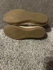 Step out in style and comfort with these Clark’s Women’s Gold Espadrille Loafers. Crafted with a sleek leather upper and a durable rubber outsole, these loafers offer both style and practicality for everyday wear. The slip-on design makes them easy to wear, while the cushioned insole and fabric lining ensure your feet stay comfortable all day long. Perfect for casual occasions, these loafers feature a solid pattern and a round toe shape that adds a touch of sophistication to any outfit. With a UK shoe size of 4.5 and a US shoe size of 7, these loafers are a great addition to any woman's shoe collection. Don't miss out on the chance to own these stylish and comfortable Clark’s Women’s Gold Espadrille Loafers. Preowned Good Condition
