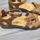 Clarks Collection April Poppy Sandals Brown Leather Size 8.5 Hook and Loop adjustable straps Great Preowned Condition, still like new. no original box Inv# B143