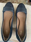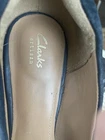 Beauty and comfort in Clark’s Artisan chunky heels that combine leather suede with plain leather and matching patent toes. US size 8M. Leather inner soles with leather outer soles and rubber bottoms. Cushion inner soles. The right shoe has a scuff on the outer heel shown in photo. Very clean.