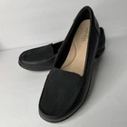 The Clarks Ultimate Comfort Ashland Jam Black Snake Loafer in Women's Size 9M is a stylish and versatile shoe for various occasions such as travel, casual outings, formal events, workwear, and business meetings. Designed with a round toe shape, slip-on closure, and cushioned insole, this loafer offers comfort and convenience. The black leather upper with snake embossed accents adds a touch of sophistication, while the rubber outsole provides durability. Perfect for year-round wear, this Clarks loafer is a must-have for any fashion-forward woman looking for a blend of style and functionality.