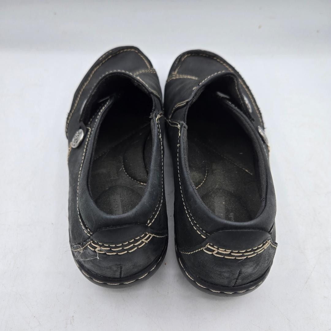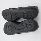 The Clark's Ashland Lane Black Leather Slip On Loafers in size 7 are a stylish and comfortable choice for women. Featuring a solid black color, round toe shape, and slip-on closure, these loafers are perfect for casual occasions. Made with cushioned leather material, they offer comfort and support for all-day wear. The Clarks brand ensures quality and durability, making these loafers a versatile option for the summer, fall, and spring seasons. Bin B