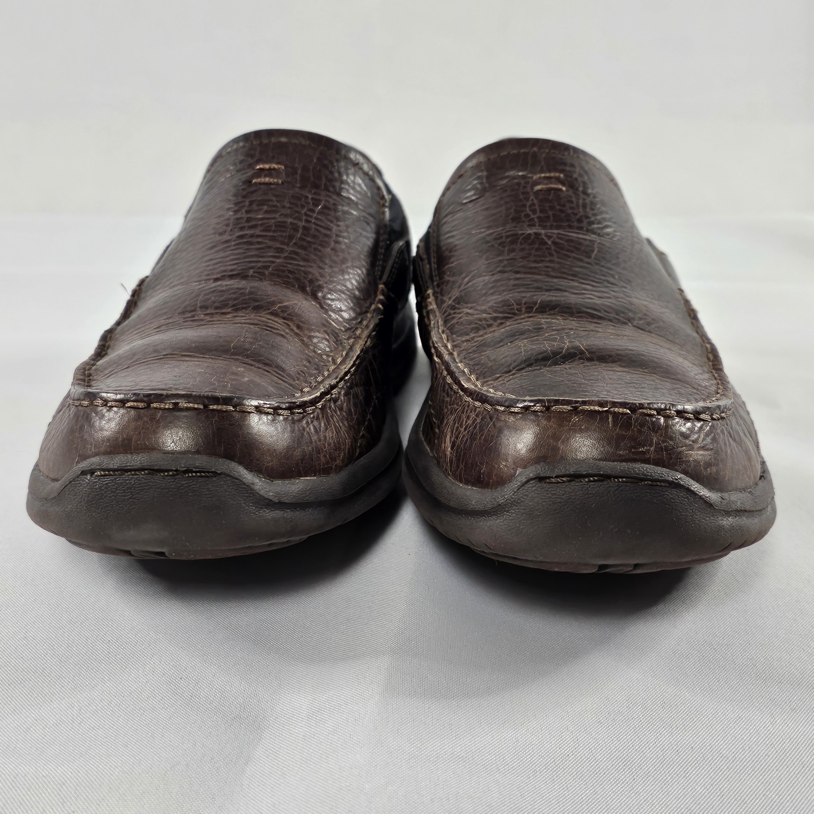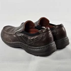 Clarks Balance 01950 Brown Leather Slip On Loafer Shoes Mens Size 10M Preowned. Made In 2014. Please Check All Pictures Closely For A More Detailed Visual Description Of Condition. Ships Out Free Within One Business Day.