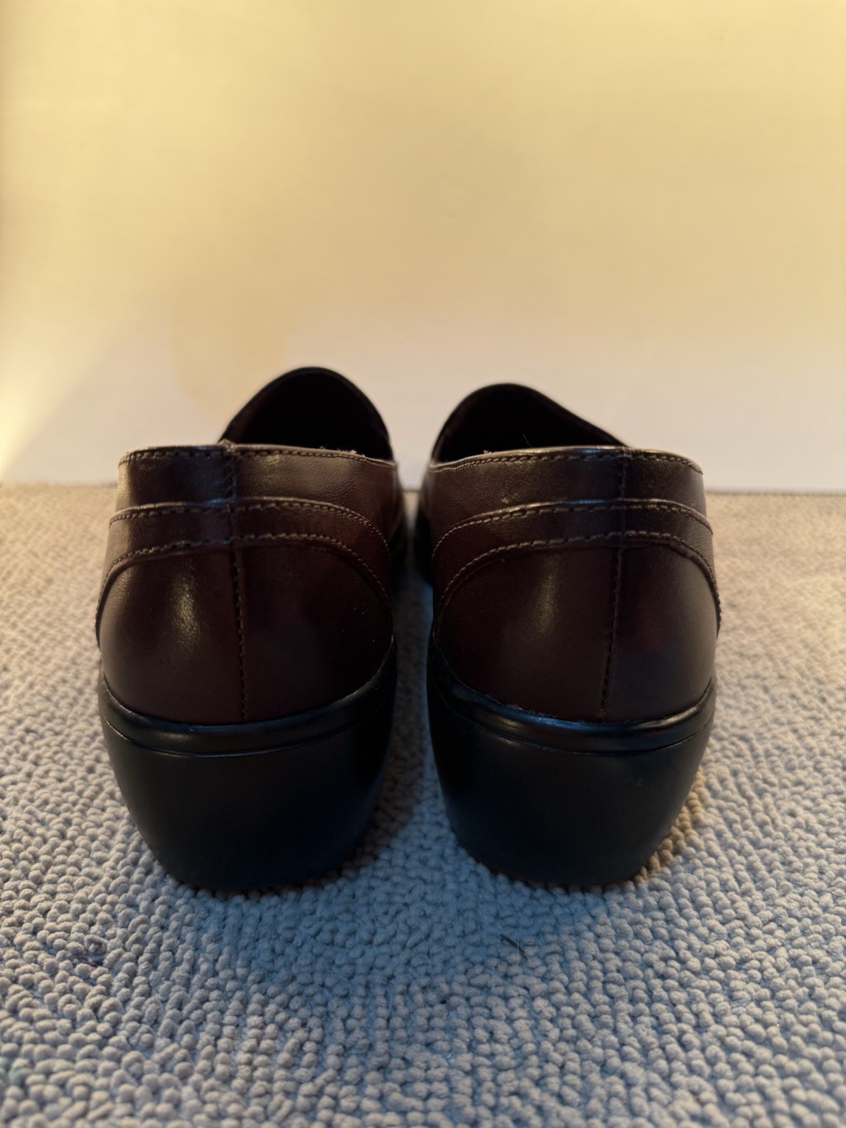 The Clarks Unstructured Brown Leather Loafers are stylish slip-on shoes perfect for various occasions such as travel, casual wear, activewear, and workwear. These low-heel loafers feature a round toe shape, rubber outsole, and a comfortable cushioned insole. The adjustable strap adds convenience for all-day wear, while the solid brown color and leather lining add a touch of elegance. Ideal for the modern woman looking for both style and comfort in her footwear, these loafers are a versatile addition to any wardrobe.