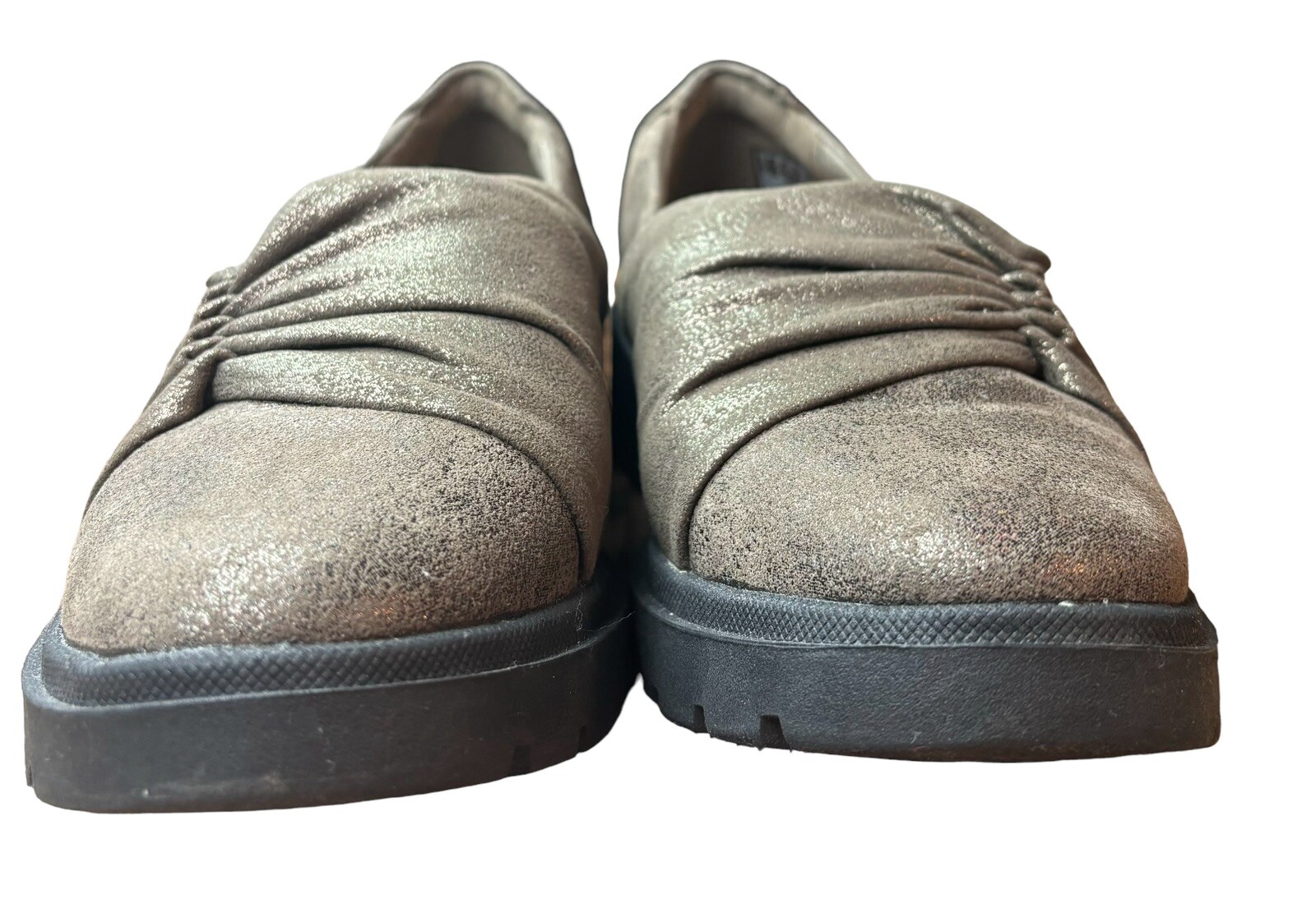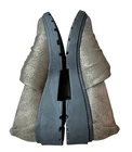 Elevate your shoe collection with these stylish Clarks Calla loafers in bronze brown. The slip-on design makes them perfect for casual occasions, while the lug-sole outsole provides comfort and durability. The fabric and suede upper material is accented with a metal theme, and the shoes are available in UK size 6, US size 8.5, and EU size 39.5. These flats are suitable for all seasons, whether it's winter, summer, fall, or spring. The insole material is also made of fabric for added comfort. These Clarks Calla loafers are a must-have for any fashion-forward woman looking for a comfortable and stylish shoe.