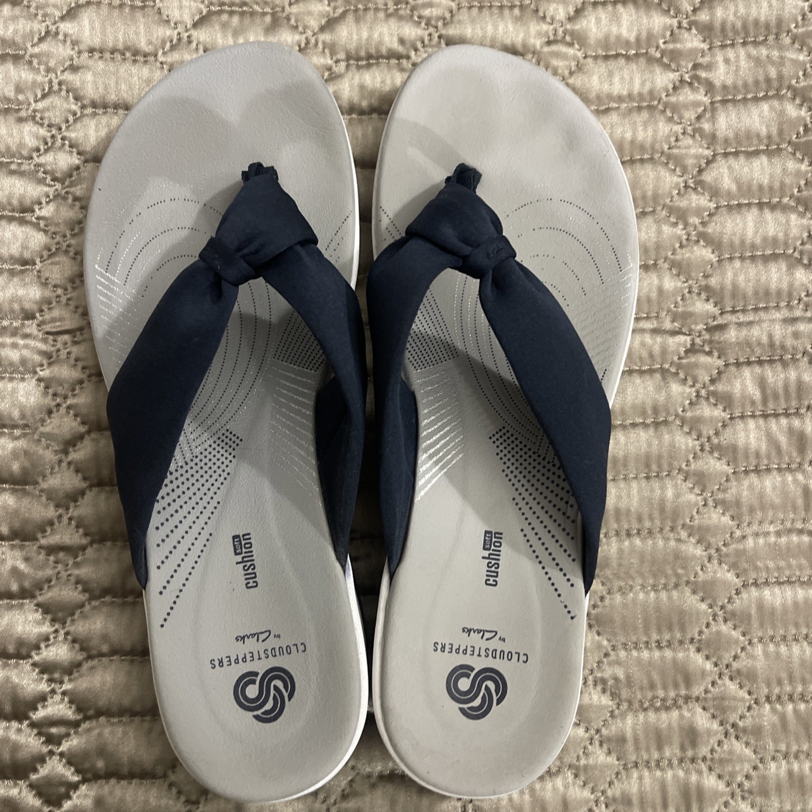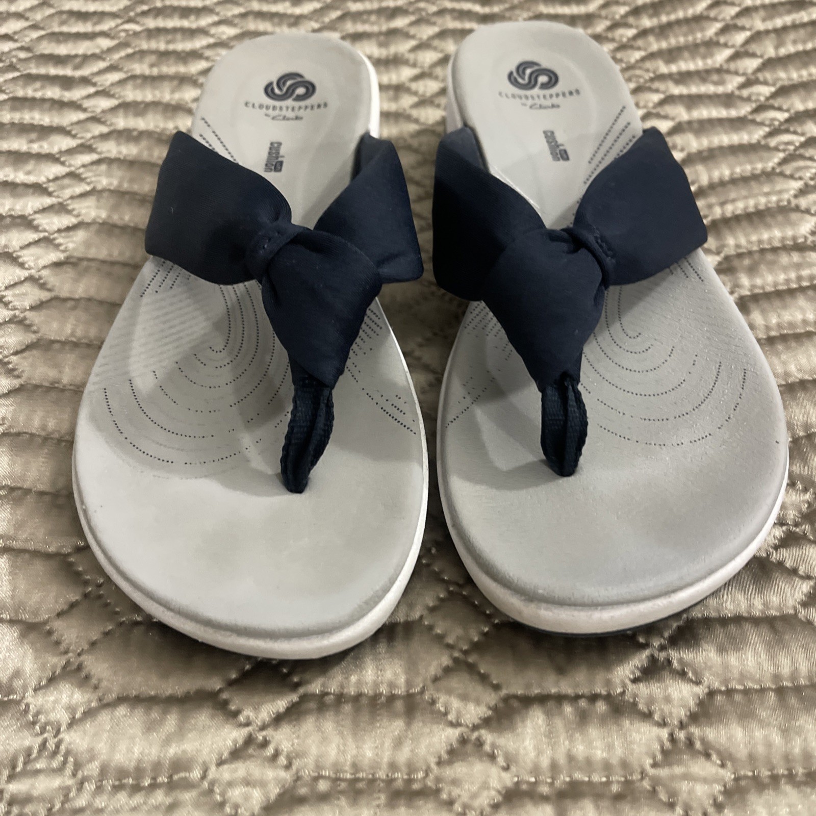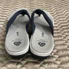 The Clarks Cloudsteppers Women's Sandals in size 9 are a stylish and comfortable option for casual wear. These navy sandals feature a slip-on closure and a low heel height, making them easy to wear for extended periods. The synthetic upper material and M shoe width provide durability and a comfortable fit. The solid blue color and Clarks brand ensure a classic and versatile look suitable for summer, fall, and spring seasons. Made in China, these sandals are a reliable and fashionable choice for women's footwear.