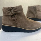 Clarks Collection Suede Ankle boots with Bow Sharon Salon Taupe,Size 11M Zipper comes from a smoke and pet free place, you can contact us if you have questions. Please note that some photos may not show accurate shades. Photos are of the actual item you will receive,See photos for details.