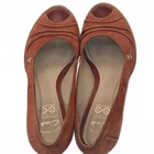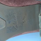 Clark's peep toe heels. Suede leather pumps with a Cuban style block heel. Women's size 5 1/2. There is contrast stitching on the sides and a raised detail on the toes. Color is rust red or burnt orange. No wear on the soles.