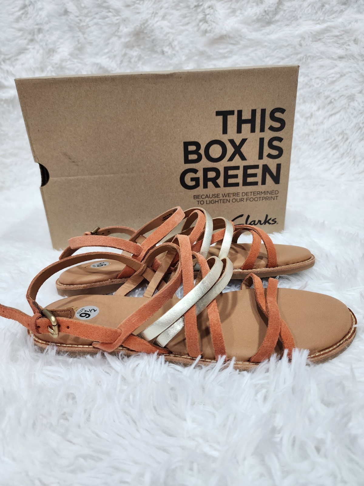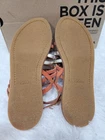 The Clarks Karsea women's size 10 shoes are stylish and comfortable strappy fashion sandals in an orange-brown color. Made with leather, these sandals provide a trendy and practical option for everyday wear. The Clarks brand ensures quality, and the strappy design adds a touch of elegance to the overall look. Perfect for a day out in the sun or a casual evening gathering, these sandals are a versatile addition to any woman's shoe collection.