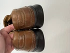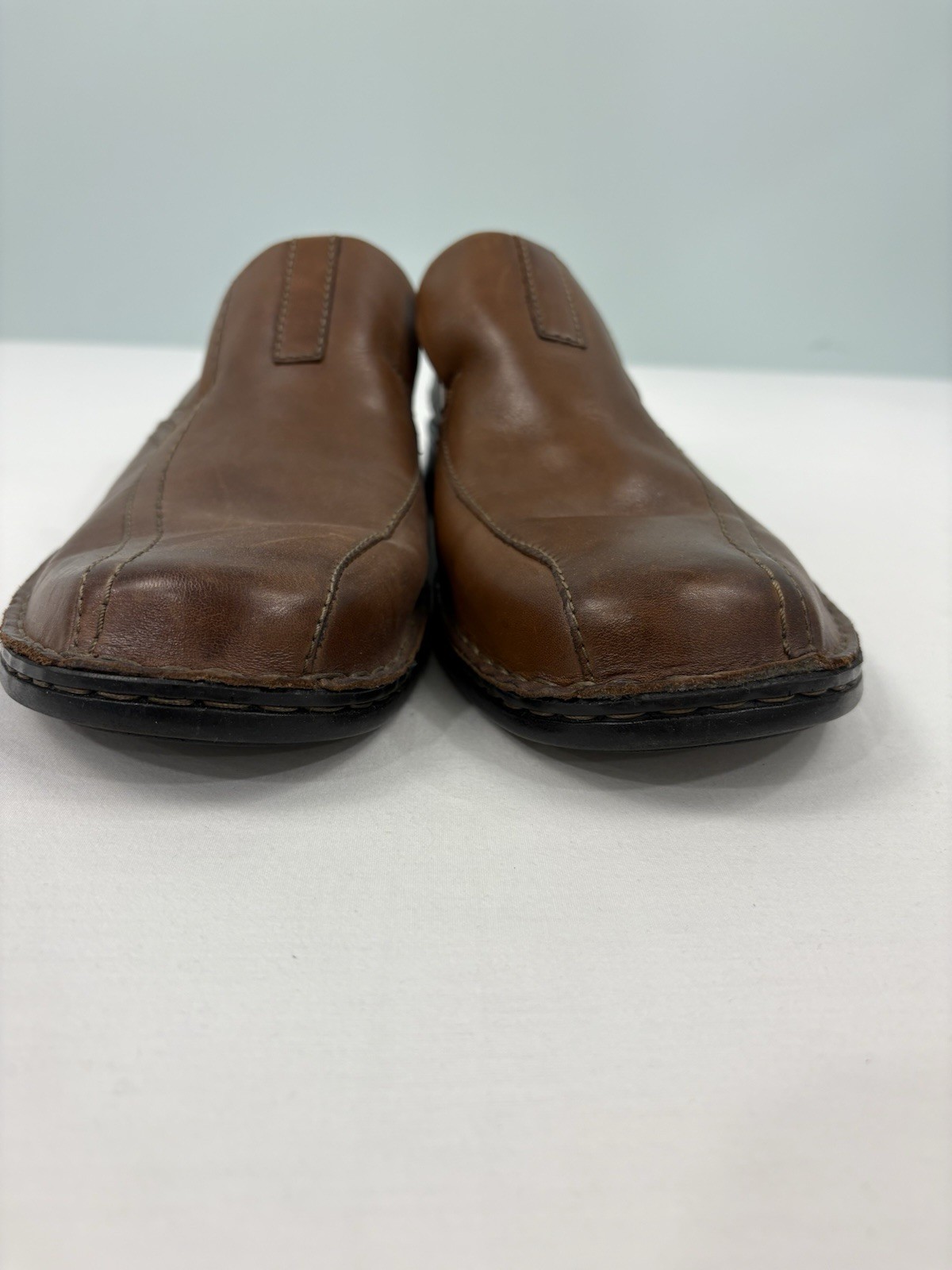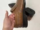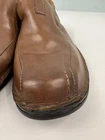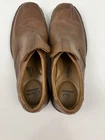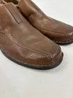 A few signs of wear. See photos. The Clarks Men's Escalade Step Slip-On Loafers in brown leather are a stylish and comfortable choice for casual occasions. With a slip-on style and round toe shape, these shoes are easy to put on and take off. Made with high-quality leather, these loafers feature a comfortable outsole and are designed for all-day wear. The Clarks brand is known for its quality and durability, making these shoes a reliable option for any man's wardrobe.