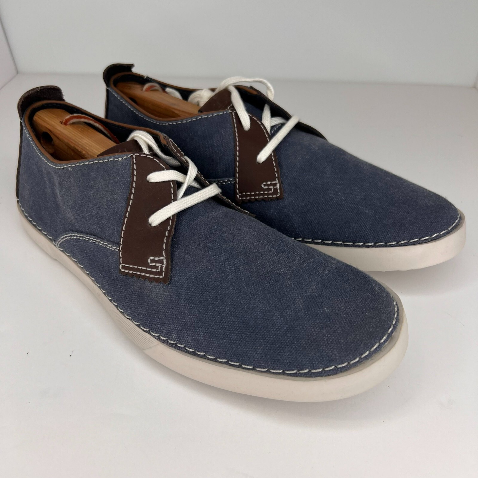 Elevate your casual shoe game with these blue Clarks Neelix Vibe sneakers. Featuring a round toe and lace-up closure, these sneakers are perfect for a comfortable and stylish look. The solid pattern and canvas fabric type make them versatile for any season, whether it's summer, fall, or spring. The rubber outsole material ensures durability and traction, while the M shoe width provides a comfortable fit. With a UK shoe size of 7.5 and US shoe size of 8.5, these sneakers are perfect for men who want a casual yet stylish addition to their wardrobe. Made in Cambodia, these Clarks Neelix Vibe sneakers are a must-have for any casual shoe lover. 100% CUSTOMER SATISFACTION IS OUR GOAL! Our items are always carefully examined for condition, measured if necessary, and photographed in a climate controlled and smoke-free environment. We make every attempt to accurately describe and clearly picture the items we have for sale. Please, ALWAYS view all of the photos. We value your business and our goal is your complete satisfaction. FAST SHIPPING All items are packaged with care and shipped out the same or next business day via USPS, FEDEX, or UPS with tracking numbers so you are always informed. RETURNS We offer a 30-day return policy. All items must be unused and unopened in the condition in which they were received, with original packaging, and all accessories included for return. REVIEWS - CUSTOMER SATISFACTION - COMMUNICATION We aim to make you happy. After you receive your shipment, please leave a positive review . If you have concerns or questions about your order, please contact us so we can resolve the issue. We will do our best to make you satisfied. THANK YOU FOR YOUR BUSINESS!