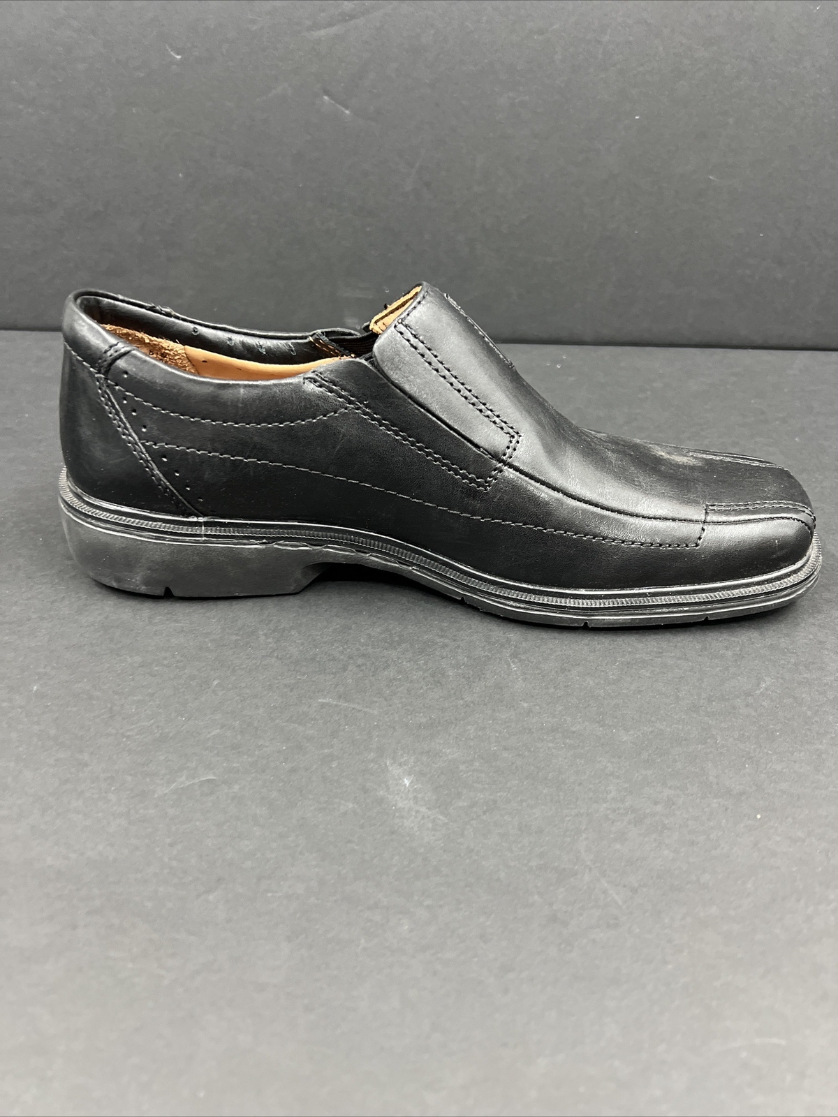 Elevate your style with these Clarks Unstructured slip-on shoes. Made with premium leather and featuring a sleek black color, these shoes are perfect for any casual occasion. The shoes are designed for comfort, with a leather lining, leather insole, and man-made outsole. These shoes are part of the Clarks Unstructured collection and are characterized by their slip-on style, making them easy to wear. They are perfect for men who want a comfortable and stylish look without sacrificing quality. With a UK shoe size of 8 and a US shoe size of 8.5, these shoes are a great addition to any collection.