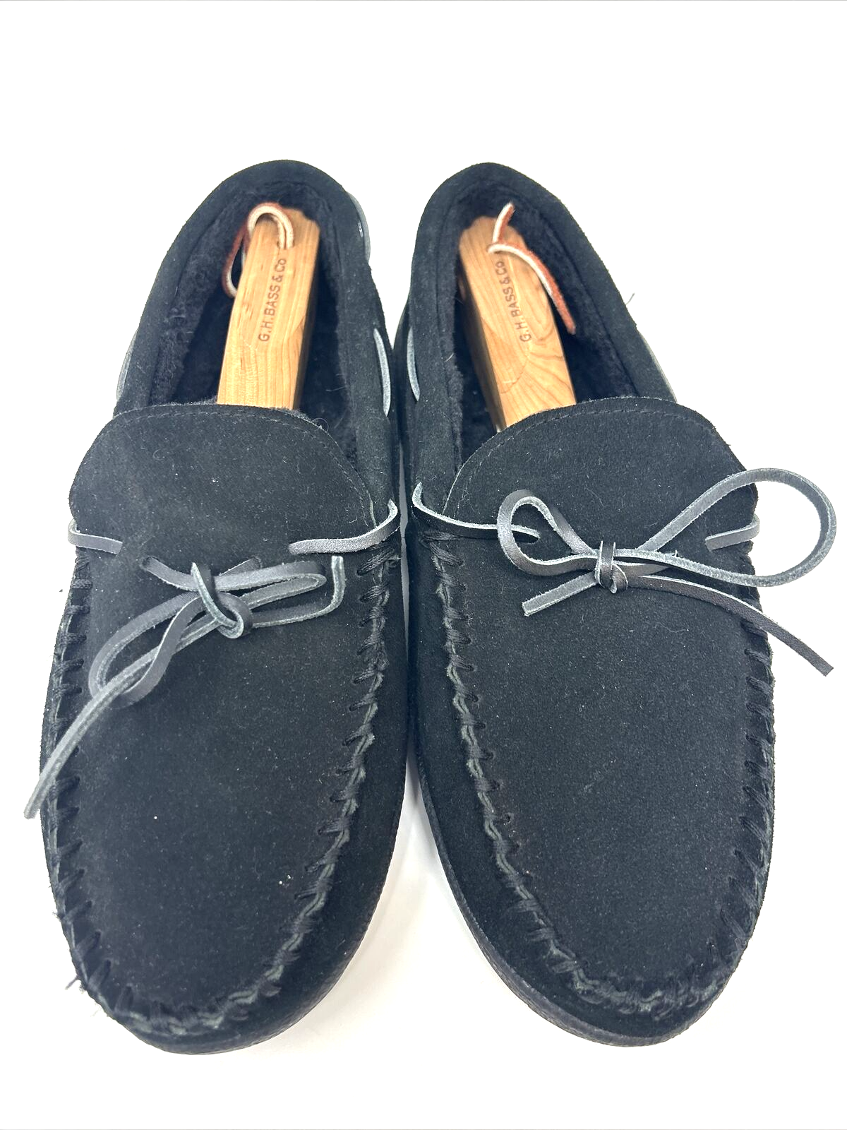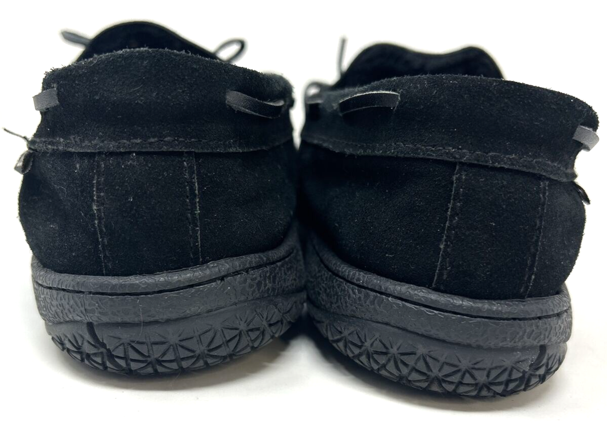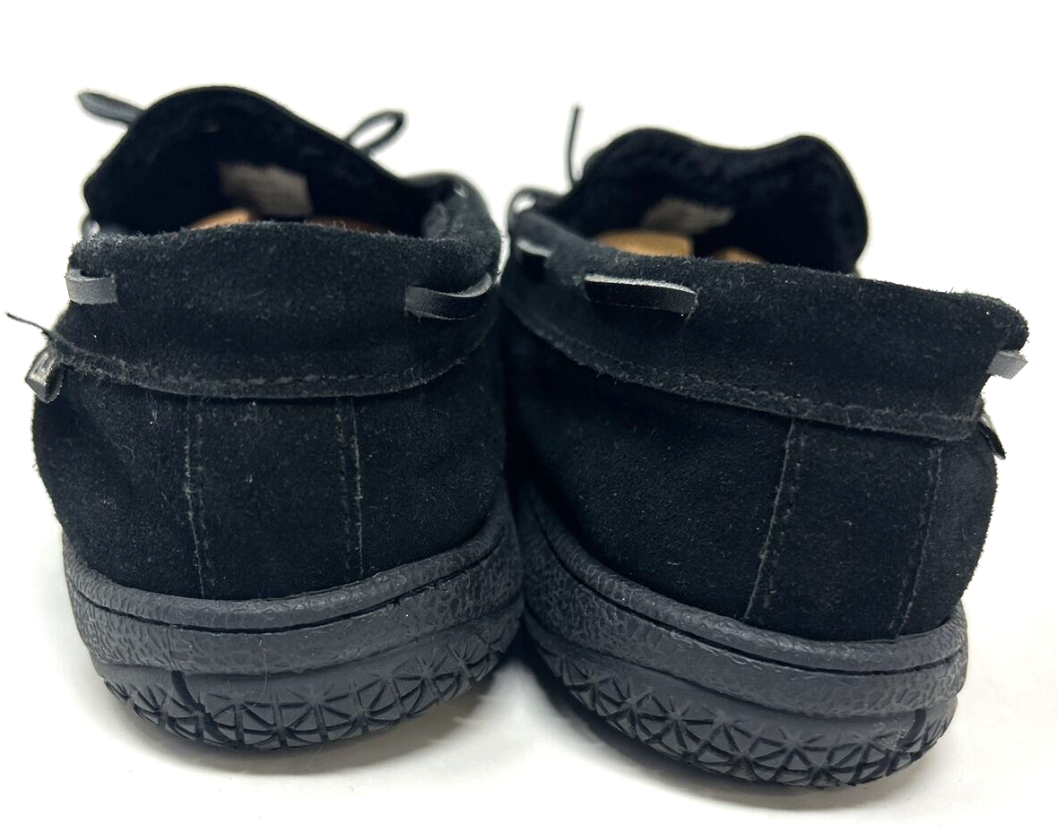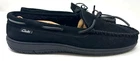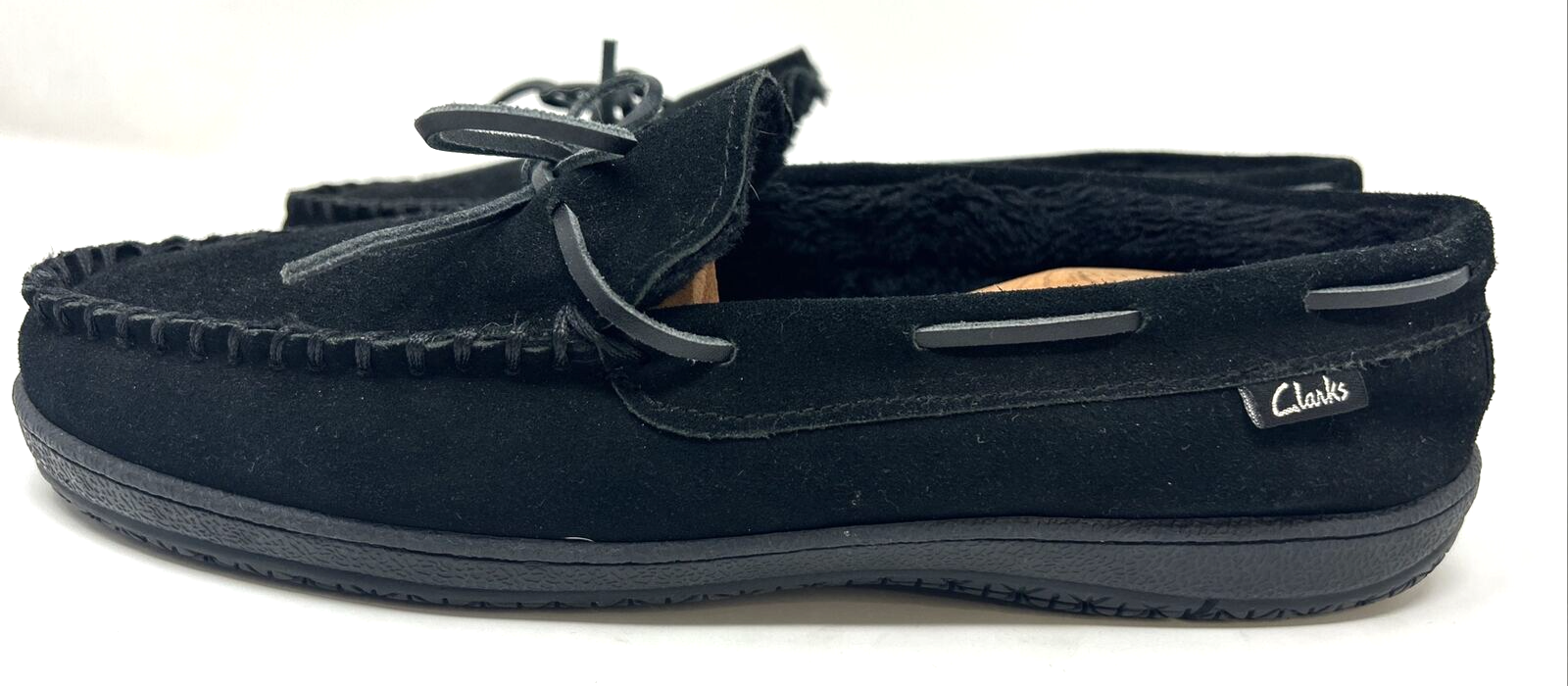 Clarks Black Suede Slippers Shoes Mens 11 M Moccasin Faux Fur Lined Excellent pre-owned condition. No signs of wear on slipper or tread.