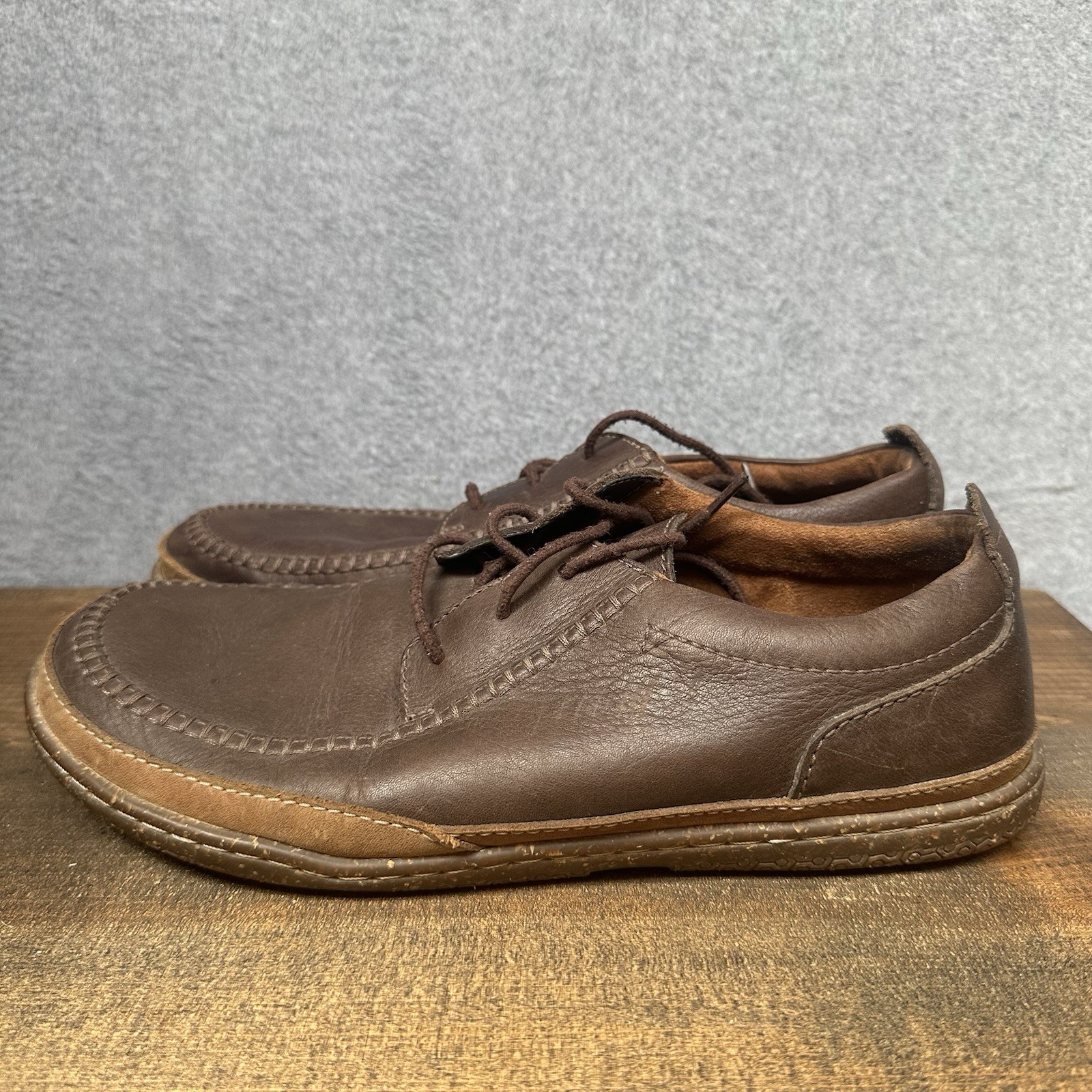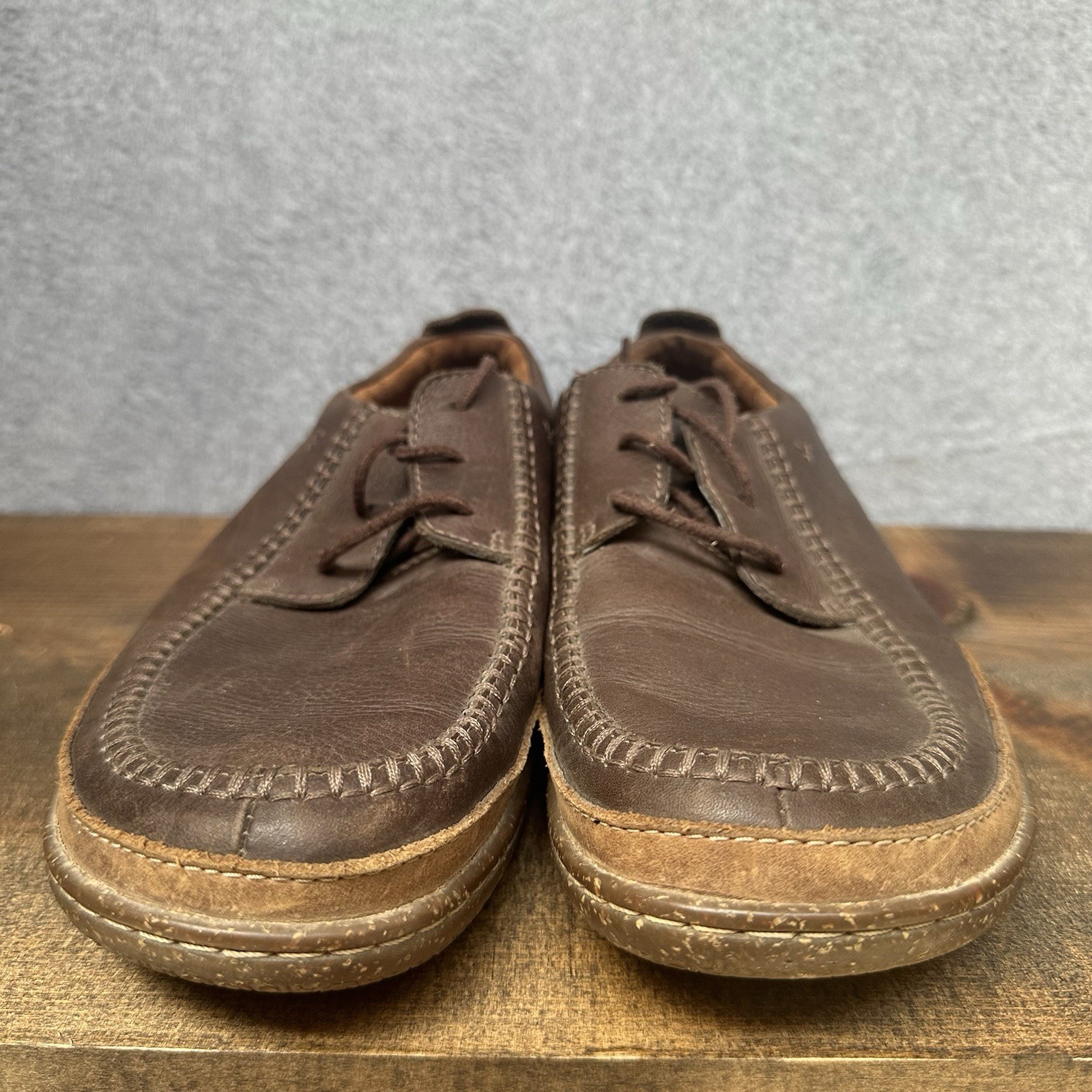 Elevate your casual style with these Clarks Trapell Pace shoes in dark tan leather. Designed with comfort in mind, these lace-up shoes feature a round toe shape and a rubber sole for added traction. The composition leather lining and upper material make for a luxurious feel, while the Clarks brand ensures quality and durability. Perfect for any casual occasion, these shoes are a must-have for any stylish man's wardrobe. Any serious flaws or issues will be shown in photos.