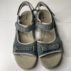 The Clarks Morse Tour Sport Sandals in women's size 11 M are designed for beach walking and urban hiking adventures. Made with suede material in a stylish blue color, they have three adjustable straps and feature a low heel height with a rubber outsole for added durability. Perfect for outdoor activities in summer, spring, and fall, these sandals offer both comfort and functionality for the modern woman on the go. The strappy design and embroidered accents add a touch of flair to these versatile sandals that can be worn for travel, casual outings, activewear, and even workwear.