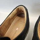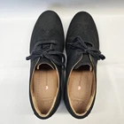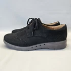Clarks Oxford UNstructured Artisan Hinton Black Womens Size 10 Good preowned condition with small scuff on tip of one shoe. Nubuck upper Lace entry Wingtip design with broguing Padded collar Unstructured technology