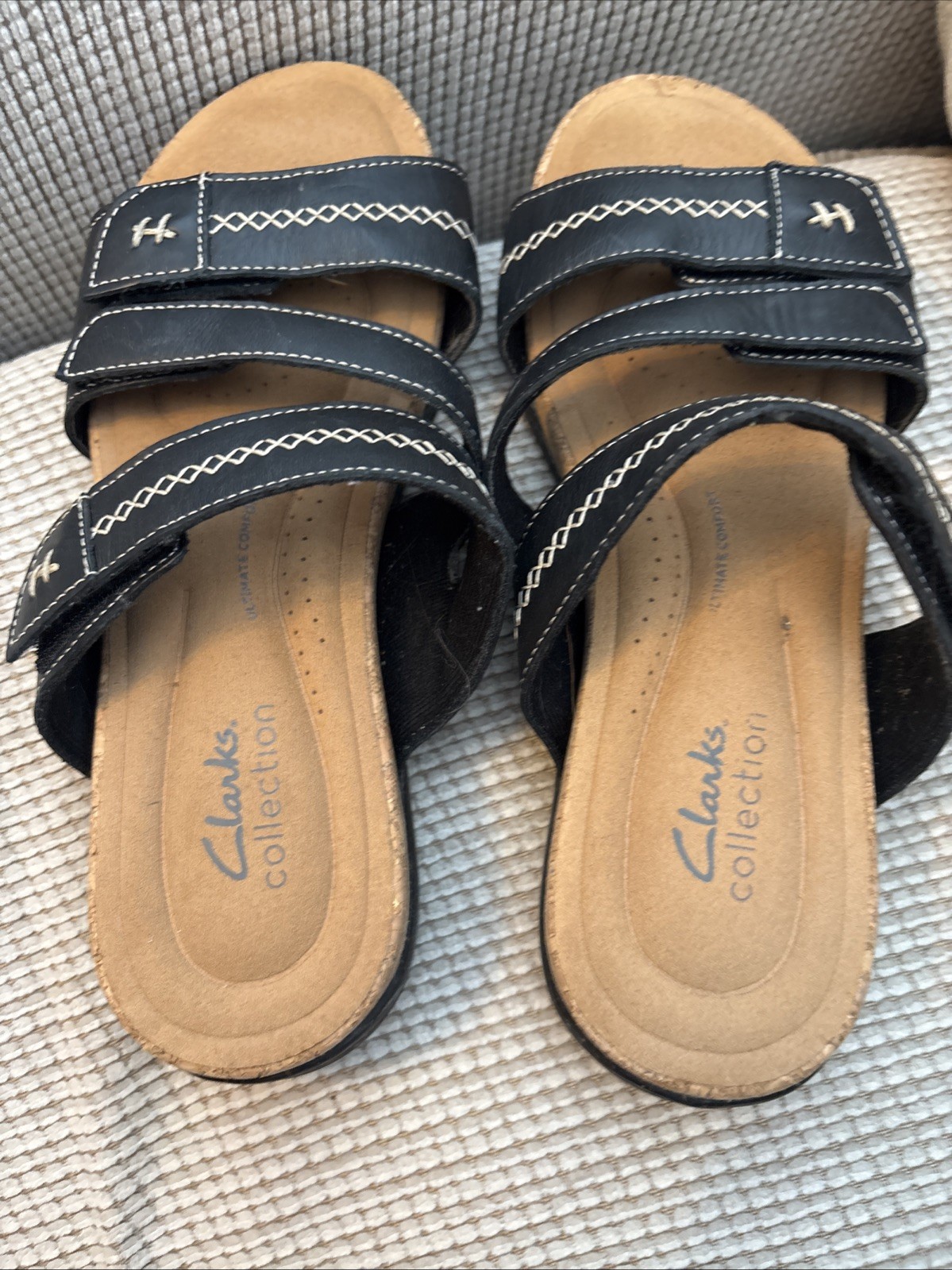Elevate your summer footwear game with these stylish Clarks Collection leather slide sandals in Roseville Bay Black. The low heel height and slip-on closure make them perfect for a day at the beach or a casual walk in the park. The black shade and Clarks brand add a touch of sophistication to your outfit. These women's sandals are available in UK shoe size 6, US shoe size 8.5, and EU shoe size 39.5. The upper material is made of high-quality leather to ensure durability and comfort. The shoe width is M, which fits most people. Add these sandals to your collection and step out in style this summer!