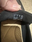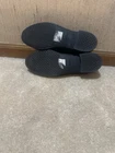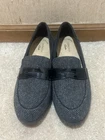 This is a pair of women's black and gray Penny loafers by Clarks in size 9. The shoes feature an Argyle/Diamond pattern, an almond toe shape, slip-on closure, and a flat style. They are designed for casual and business occasions, with a preppy theme. The loafers have a comfortable cushioned insole with a fabric lining and a rubber outsole. The shoe width is M (medium) and the upper material is synthetic. Preowned Good Condition