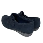 Clarks Women’s Everlay Coda Loafers in Blue Suede - Size 7.5 The soles are turning white, and there are some small signs of wear. Besides that, these shoes are in great shape! Blue leather, ruched upper with buckle and rubber soles. 2P20 46-2814 1 lb 3 oz Tags: casual, comfortcore, cozycore