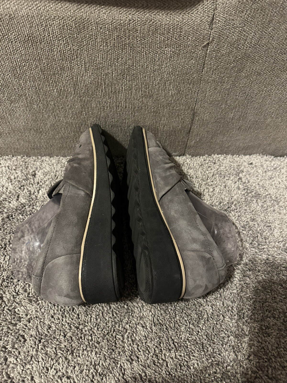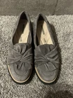 Step into comfort and style with these elegant gray suede loafers from Clarks. Perfect for both casual and business occasions, these flats have a fabric lining and a synthetic insole material that ensures maximum comfort for your feet. The rubber outsole provides durability and a sturdy grip on any surface. These slip-on loafers are designed with a solid pattern and a classic loafer style that never goes out of fashion. Available in UK shoe size 5, US shoe size 7, and EU shoe size 37.5, these shoes have a medium shoe width that fits most foot sizes. Ideal for going out, these shoes are a must-have for any stylish woman's shoe collection. Preowned Good Condition