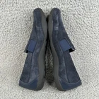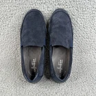 The product is a pair of Clarks women's shoes in the Haley Park blue suede leather loafers slip-on flats size 7. These shoes feature a solid blue color with a round toe and slip-on closure, making them perfect for travel, casual outings, or business occasions. They are cushioned for comfort and made with a durable rubber outsole, suitable for all seasons. The upper material is suede, while the lining material is fabric, and the insole material is synthetic. The loafers are part of the Clarks collection and come from Vietnam.