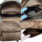 COACH backpack, daypack, bag, womens gold hardware, signature, all-over pattern. Size: Length 12.20 inches, Width 10.24 inches, Depth 3.94 inches, Handle height 1.97 inches. Condition: [AB] Corner damage and zipper pull thread breakage, but relatively clean. Color: Brown, Dark Green. Material: PVC leather. Accessories: None. I promise fast shipping via FedEx or DHL as soon as possible! Import duties, taxes and charges are not included in the item price or shipping charges. These charges are the buyer’s responsibility. These charges are normally collected by the delivering freight (shipping) company or when you pick the item up - do not confuse them for additional shipping charges.
