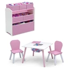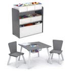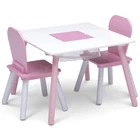 Complete your child?s playroom or bedroom with this 4-Piece Toddler Playroom Set by Delta Children. Vibrant and playful, this set includes a wooden play table with storage in the middle, two coordinating chairs and a multi-bin toy organizer. All items are at the perfect kid-sized height to help teach your little one responsibility and independence as they play, eat and clean up on their own. The adorable two-tone design ensures your little one?s playroom is a stylish and charming as the rest of your home. Ideal for both boys and girls, this kids? playroom set comes in two colors, Grey/White and Pink/White. Get it today--the play possibilities are endless with this versatile set! Recommended for ages 3+. Delta Children was founded around the idea of making safe, high-quality children's furniture affordable for all families. They know there's nothing more important than safety when it comes to your child's space. That's why all Delta Children products are built with long-lasting materials to ensure they stand up to years of jumping and playing. Plus, they are rigorously tested to meet or exceed all industry safety standards. Table and Chair Set with Storage: Table features handy toy keep in the center for easy storage Each chair holds up to 50 lbs. This set features fun and colorful two-tone design Made of engineered wood and solid wood | Scratch-resistant finish protects the table's colorful graphics Assembled dimensions: 24"L x 24"W x 17.72"H | Easy assembly Multi-Bin Toy Organizer: Multi-Bin Toy Organizer features 6 bins in varying sizes to fit a wide variety of toys Colorful, two-tone design will help encourage your child to keep their space neat and tidy Made of engineered wood, solid wood and fabric Bin meets or exceeds all safety standards set by the CPSC Assembled dimensions: 24.61?L x 11.81?W x 26.57?H | Easy assembly