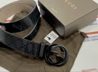 Classic GUCCI Men’s Belt GG Black shiny canvas Two toned black/matte buckle Size 105/42 Fits 36/37 Pants/Jeans. Comes with dust bag and box Like new never worn in mint condition Flawless! Priority mail same day shipping!