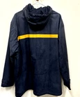 This classic hooded raincoat in size XL features a navy blue color with a chest logo accent representing the Georgia Southern University Psychology Department. Made by Charles River, the outer shell is crafted from polyurethane with polyester insulation for warmth. The raincoat is designed to be windproof, waterproof, and water-resistant, ideal for protection against the elements. Additionally, it has moisture-wicking properties and a nylon lining for added comfort. Perfect for fans of Georgia Southern University or individuals in need of a reliable raincoat with a touch of university pride.