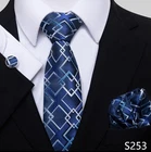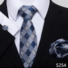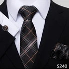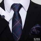 HomeClassic Slim Business Satin Men's Necktie Hanky Cufflinks Set Plaid with Box