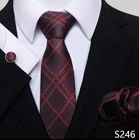 Classic Slim Business Satin Men's Necktie Hanky Cufflinks Set Plaid with Box