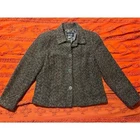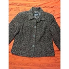 Wow, looks like a tweed high classy jacket. 4 button up the front. Size 10. Made in the USA. Such a mixture of colors. Darker, like blacks, brown, and splashes of reds or oranges. Lightly lined. Mock padded shoulder. No flaws! No rips, stains, or tears.