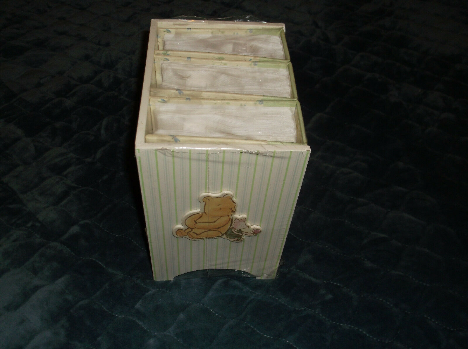 THIS IS FOR A BRAND NEW SEALED CLASSIC POOH PHOTO LIBRARY FOR THE BABY'S 1ST 3 YEARS. THE 3 ALBUM ARE DISPLAYED ON A DECORATED SMALL WOODEN RACK EACH ALBUM HOLDS 100 4X6 INCH PHOTOS AND THEY ARE PVC FREE PAGES INSIDE.