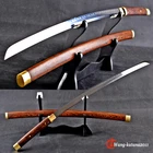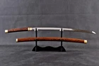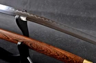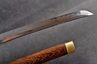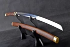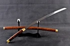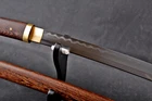 Product Parameter: Item Number: LQ151246 Hardness(HRC): 60 Hamon: Natural hamon , caused by clay tempering process. Blade Material: 1095 steel hand folded by 15 times(32768 layers ),百炼钢, Clay tempered Damascus folded steel . Overall Length: 103cm/40.6" Blade Length: 70cm/27.5'' Handle Length: 26 cm/10.24'' Blade Widdth: 3.2 cm/1.26'' Blade Thickness: 0.7cm/0.28'' Bo-hi: No( Better hardness, not easy to break ) Saya: Rosewood , Heavier , Comfortable use, Beautiful and unique natural wood grain Fuchi & Kashira & Koijiri: Brass (It won't fade) Handle: Full-tang , 2 meguki fix the handle vertically, very firm. Craft: Hand folded , Clay tempered, Water quenching treatment, traditional hand-polishing, etc . Simple Graceful Appearance, Its's a functional sword. you can use it cut bamboo, paper, water bottles, tatami,etc. The sword stand is not include. SHIRASAYA: A shirasaya is a plain wooden Japanese sword consisting of a saya (scabbard) and tsuka (hilt), traditionally made of nurizaya wood and used when a blade was not expected to see use for some time and needed to be stored. They were externally featureless save for the needed mekugi-ana to secure the nakago (tang), though sometimes sayagaki (blade information) was also present. The need for specialized storage is because prolonged koshirae mounting harmed the blade, owing to factors such as the lacquered wood retaining moisture and encouraging corrosion. Manual grinding: Using the unique bright stone of Longquan Town, hand grinding, very test sword casting skills and technology, grinding out the pattern effect is special texture! Ancient quenching: Modern vacuum heat treatment can meet the hardness requirements of most swords, but the traditional quenching method has better effect, can soften the medium strip steel, and the hardness is higher. Additional Service About us Sword Noun Explananation Delivery details Sword maintenance Additional Service It's free for engraving English words, Chinese Characters and Japanese Kanji , etc. You need pay extral $20-30 for engraving patterns. Sharpness Most of our blades are sharp. We can also make the blade unsharpened for free if you require. Matching Swords Set If you buy one katana, we can make a matching Wakizashi or Tanto for you. The price varies from different swords. Please contact us if you need make custom matching set. About us We have our own sword-casting factory. The factory is located in Longquan, a small town with a long history of sword-casting in China. Most of the famous Swords in China are made there. Rich raw materials, skilled technology, traditional sword casting technology from generation to generation. Manual production really takes a lot of time. We will prepare most products in advance ,and arrange delivery within about a week. However, sometimes the delivery time is delayed due to weather or raw materials,etc. we hope to get your understanding. Feel free to contact us to inquire about the status of your order. Each handmade sword is unique. Our swords are great for gifts or for your own collection. Our swordsmithing master makes every sword attentively, hope you can feel our sincerity. We will also give you the best customer service, any questions please feel free to contact us. Sword Noun Explananation Quenching After the blade has been shaped, the sword would be quenched. We quench our swords in either water or oil. Water quenching produces a tougher edge which can also be hardened further more using clay. Blades quenched in oil are still considerably hardened and do have superior flexibility compared to a water quenched blade. Folded Steel : In the forging process , the most useful process is the folding, where the metals are forge welded, folded, and welded again, as many as 124 times(15 times is the best). The folding removes impurities and helps even out the carbon content, while the alternating layers combine hardness with ductility to greatly enhance the toughness. The less impurities, the harder and sharper the blade will be. We have done cutting tests on the blades. it can cut bamboo(young bamboo tree), grass mattings and slice paper(The blade should be tilted at 45 degrees). Clay tempered : To maximize both the cutting edge and the resilience of the sword spine, a technique of differential heat-treatment is used.The sword is painted with layers of clay before heating, providing a thin layer or none at all on the edge of the sword, ensuring quick cooling to maximize the hardening for the edge.A thicker layer of clay is applied to the rest of the blade,causing slower cooling.This creates softer,more resilient steel, allowing the blade to absorb shock without breaking. About 1095 carbon steel : The best quality of high carbon steel is at 1095, the carbon content was 1.03%, and the element contains a small amount of chromium, molybdenum, vanadium, after heat treatment can reach HRc58-60 hardness, toughness is very good, but not resistant to rust, more be applied to traditional european-style hunting knife, large cutting knife and military dao. Such as the United States during world war ii "KA - BAR" saber is in 1095 as the blade material. Kobuse : The vast majority of modern katana and wakizashi are the maru type which is the most basic, with the entire sword being composed of a single steel. The kobuse type is made using two steels, which are called hagane (edge steel) and shingane (core steel). Steel of different materials is forged and welded together to hammer the basic shape of the sword. This allows the overall blade to have a higher toughness and absorb a lot of impact. Reducing the possibility of breaking or bending to some extent. Makes the blade not only has high hardness, but also has super toughness Delivery details a) Import duties, taxes and charges are not included in the item price or shipping charges . These charges are the buyer’s responsibility. b) If you do not receive the package, or the package is damaged during transportation. We'll ta