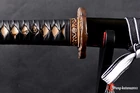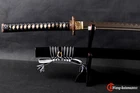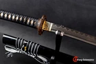 DESCRIPTION: Number: LQ1612E03 Package Include: 1sword+1bag+1certificate Bo-hi: with blood groove,can be removed Thickness: 0.7cm/0.28'' Width: 3.2cm/1.26'' Blade: 70cm/27.6'' Tsuka: 26cm/10.24'' Overall: 103cm/40.6'' Hardness(HRC): 60 Hamon: Handmade Real hamon ,formed by clay tempering process. Blade: 百炼钢,damascus folded steel Sharpness: After testing, professionals can use it to cut bamboo or A4 paper Fittings: Brass plated with real gold/silver+ Genuine rayskin + Real leather ito Handle: Full-tang ,2 meguki fix the handle vertically, very firm. Craft: Hand folded 15 times(32768 layers) , clay tempered ,water quenching treatment,traditional hand-polishing, etc . Ancient quenching: Modern vacuum heat treatment can meet the hardness requirements of most swords, but the traditional quenching method has better effect, can soften the medium strip steel, and the hardness is higher. Manual grinding: Using the unique bright stone of Longquan Town, hand grinding, very test sword casting skills and technology, grinding out the pattern effect is special texture! Tsuba & Fuchi & Kashira & Habaki Saya Additional Service About us Delivery details Tsuba & Fuchi & Kashira & Habaki Alloy Tsuba Iron Tsuba ( extra $10) Brass Set ( extral $50 ) Alloy Fuchi & Kashira Habaki TSUKA-ITO & SAGEO Tsuka-ito is the wrapping of the tsuka and sageo (下緒 or 下げ緒) is a hanging cord that is passed through the hole in the kurigata (栗形) of a Japanese sword's saya. SAMEGAWA Samegawa(鮫皮)is the ray or shark skin wrapping of the tsuka (handle/hilt). Saya Please contact us before placing an order to see if there is any stock available, as well as any additional charges. OX Horn Saya Additional Service It's free for engraving English words, Chinese Characters and Japanese Kanji , etc. You need pay extral $20-30 for engraving patterns. Hamon We can add or remove the machine-made wavy hamon for free. Bo-hi ( Blood Groove) Usually thought be used for bloodletting only. It is also used to lighten the weight of the sword. We can add or remove Bo-hi for free Sharpness Most of our blades are sharp. We can also make the blade unsharpened for free if you require. Colored Blade If you want to change to a different color blade, please contact us before purchase. Matching Swords Set If you buy one katana, we can make a matching Wakizashi or Tanto for you. The price varies from different swords. Please contact us if you need make custom matching set. About us We have our own sword-casting factory. The factory is located in Longquan, a small town with a long history of sword-casting in China. Most of the famous Swords in China are made there. Rich raw materials, skilled technology, traditional sword casting technology from generation to generation. Manual production really takes a lot of time. We will prepare most products in advance ,and arrange delivery within about a week. However, sometimes the delivery time is delayed due to weather or raw materials,etc. we hope to get your understanding. Feel free to contact us to inquire about the status of your order. Each handmade sword is unique. Our swords are great for gifts or for your own collection. Our swordsmithing master makes every sword attentively, hope you can feel our sincerity. We will also give you the best customer service, any questions please feel free to contact us. Delivery details a) Import duties, taxes and charges are not included in the item price or shipping charges . These charges are the buyer’s responsibility. b) If you do not receive the package, or the package is damaged during transportation. We'll take care of it. Please feel free to buy. c) If it is mentioned in the product description that the package includes the sword bag or sword holder , the style will be random. The sword holder or sword bag on the ebay picture is the props we use for shooting. If you really like a style, please contact us before buying. d) If you have any problem after recieve the package (wrong size, wrong style, etc.). We always provide you with the best after-sales service. Please give us a chance to help you before you give us a bad feedback . Thank you very much!