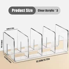 Clear Acrylic Desk File Sorter, Sturdy 3 Count (Pack of 1), Product Details Specific Uses For Product: Stationery Material: Acrylic Special Feature: Crack Resistant Color: Clear Acrylic Brand: Noger Finish Type: Polished Product Dimensions: 5.12"D x 5.55"W x 5.12"H Number of Compartments: 4 Package Type: Rigid Package Number of Items: 3 【Multipurpose File Organizer】The vertical file holder is perfect for organising books, magazines, letters, binders, folders, etc. It can also be used as a merchandise display rack, ideal for displaying electronic devices, cosmetics, drinks bottles, tableware, etc. 【Large Storage】Size: 32.3 x 14.1 x 13 cm/12.72 x 5.55 x 5.11 in, open slots make it fit for displaying and organizing your A4/ letter sized books, magazines, documemts without depth limit, suitable for your office, home, school, kitchen use. 【Easy to Use】The acrylic partition organizer saves space, and its clear mesh design will keep your desktop and closet clean and tidy; Vertically store your daily essentials, handbags, and wallets, keeping them organized and easy to access. 【 Easy Storage 】 Suitable for placing on small or crowded closet racks and internal drawers; Can separate the note card and envelope on the table, or organize the scrapbook and art paper in the workshop. 【No Assembly Required】With a minimalist appearance without sacrificing style and practicalit, the acrylic storage rack is an perfect desk organizer and accessory that does not require assembly. Easily clear clutter from the desktop, which helps with office work and organization.