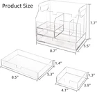 Versatile Storage Solution: This acrylic desk organizer is perfect for keeping your workspace tidy. Its dimensions are about 8.7" L x 5.5" W x 7.7"H. It can hold a variety of items such as stationery, pens, paper clips, A4 Paper, books, files, magazines, makeup and office supplies Multiple Compartments and Handle: Cididu clear pencil pen holder has 5 compartments and 2 sliding drawers, which provides ample space for sorting different size items. And the storage box has two handles, easy to move Stable and Secure: Comes with four anti-slip stickers that prevent the desktop organizer storage from moving when you pull or push the drawers, and saves your desktop from scratches. Tips: Please note that there is a protective film on the outer layer, peel it off before use to enjoy a clear view High Quality Material: The file organizer for desk is made of strong and durable acrylic. It offers a clear view of the contents inside, making it convenient to find what you're looking for. The storage box can be used for a long time and is easy to clean Dress Up Your Desk: Our desk caddy organizer requires no installation and can be quickly used in offices, homes, schools, workplaces, dormitories, dressing table. Keep your place clean and organized so that you can easily access the items you want Product Description Cididu Acrylic Desk Organizer with 2 Drawers, Clear Office Drawer Organizer Comes with four anti-slip stickers that prevent the desktop organizer storage from moving when you pull or push the drawers, and saves your desktop from scratches. Tips: Please note that there is a protective film on the outer layer, peel it off before use to enjoy a clear view This acrylic desk organizer is perfect for keeping your workspace tidy. Its dimensions are about 8.7" L x 5.5" W x 7.7"H. It can hold a variety of items such as stationery, pens, paper clips, A4 Paper, books, files, magazines, makeup and office supplies Cididu clear pencil pen holder has 5 compartments and 2 sliding drawers, which provides ample space for sorting different size items. And the storage box has two handles, easy to move Dress Up Your Desk Our desk caddy organizer requires no installation and can be quickly used in offices, homes, schools, workplaces, dormitories, dressing table. Keep your place clean and organized so that you can easily access the items you want