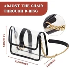 NEW! - Leather - Clear purse stadium approved: Measures 8.3x5.9x3 inches; this stylish small clear crossbody bag is decent to hold wallet, phone, sunglasses, small makeup items, perfect for where requires stadium approved clear bags such as concert, venues, festival, sport event, football games, etc. And it is a stylish on the go bag for quick errands for ladies. - Leather padded detachable & adjustable Chain. THANK YOU!