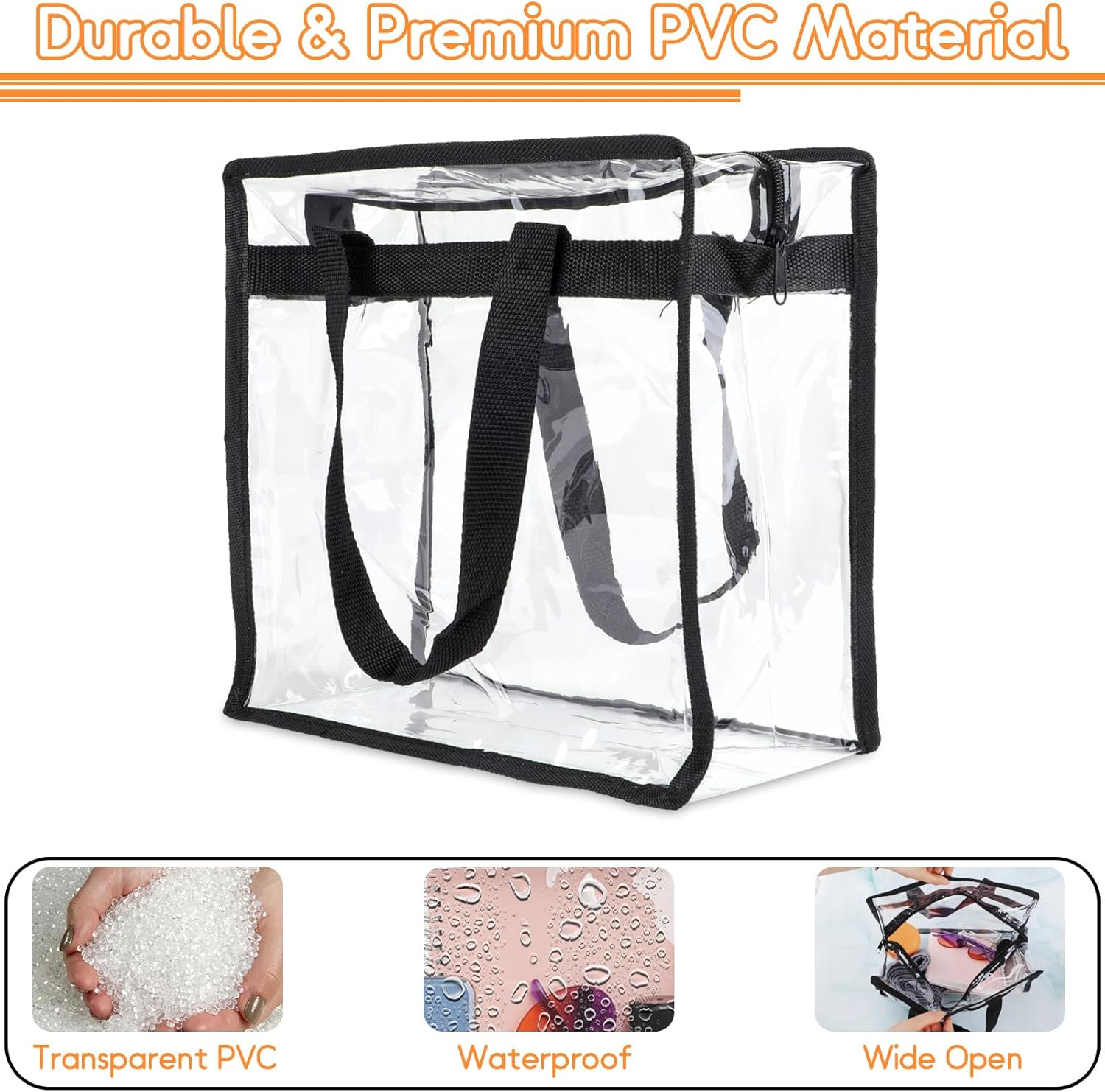 Clear Bag for Stadium Events Approved, 12x6x12 Large Transparent Tote Bag with Zipper, PVC Clear Bag Stadium Approved for Gym Concert Sports Festivals School Work
