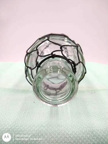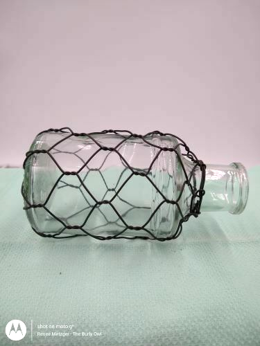 Wire Mesh Bottle Vase Glass Clear Black Wire Rustic Round Lip Mouth 4" Tall. Measurements are approximately 4" tall and 2" in diameter. Condition is Brand New/Unused. Please check out the photos in this listing for further information. If you have any questions or concerns, please contact us. Thank you for your support! Please check out The Burly Owl Lady eBay store for more home decor goodies! Shipping USPS. We ship vintage and new items. We carefully pack with care to ensure thesafety of each item. We do not passthese packaging costs onto the buyer. Furthermore, we do not charge any extra fees for handling. We only charge for the USPS shipping charge. We do monitor shipping prices frequently. In most cases, we do find the USPS to be themost inexpensive way to ship our products. We try to be as detailed as we possibly can in our photosand descriptions. We try to mention anyimperfections in our vintage items. Wemay miss things from time to time or our photos may not be enough clarificationfor you to see the item. We will be gladto answer any questions or send you more photos. If at any time, you have a question or issue, please contactus immediately. We will contact youwithin 24 hours. We want to make sureyou have a good experience in purchasing any of the products. If you are happy with your purchase, please leavefeedback. It will help us to grow andoffer more great items in our store! Thank you for your interest in one of the many products inour eBay store! Renee Burly Owl Lady