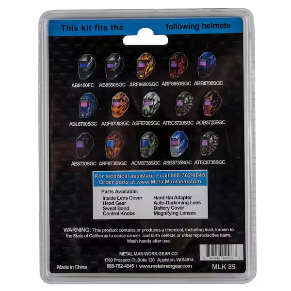 METAL MAN MLK85 Cover Lens #8 Pack METAL MAN MLK85 Cover Lens #8 Pack Protective Lens for METAL MAN 8000 Series Welding Helmets The METAL MAN MLK85 Cover Lens contains 5 clear protective lenses designed to protect the auto-darkening electronics on METAL MAN 8000 series welding helmets. Over time, these lenses can become pitted or worn, reducing visibility while welding. Replacing worn lenses ensures optimal vision and protects your helmet’s electronic cartridge from dirt and sparks. Key Features Protective cover for the auto-darkening electronic cartridge Prevents pitting and scratches on the auto-darkening electronics Replace pitted or worn lens for better vision while welding Properly sized to fit METAL MAN 8000 series helmets Complies with ANSI Z87 plus standards Package contains 5 protective lenses Specifications Lens Size 4.37 in × 3.54 in × 1.5 mm Number of Pieces 5 Returnable 90-Day Product Type Protective Lens Buy Now section> 🛍 About Us Welcome to our store! We offer high-quality products at great prices, including: 🛠 Tools 🏡 Home Improvement 🍽 Kitchen & Garden Items 🚚 Shipping ✅ Free shipping to lower 48 U.S.