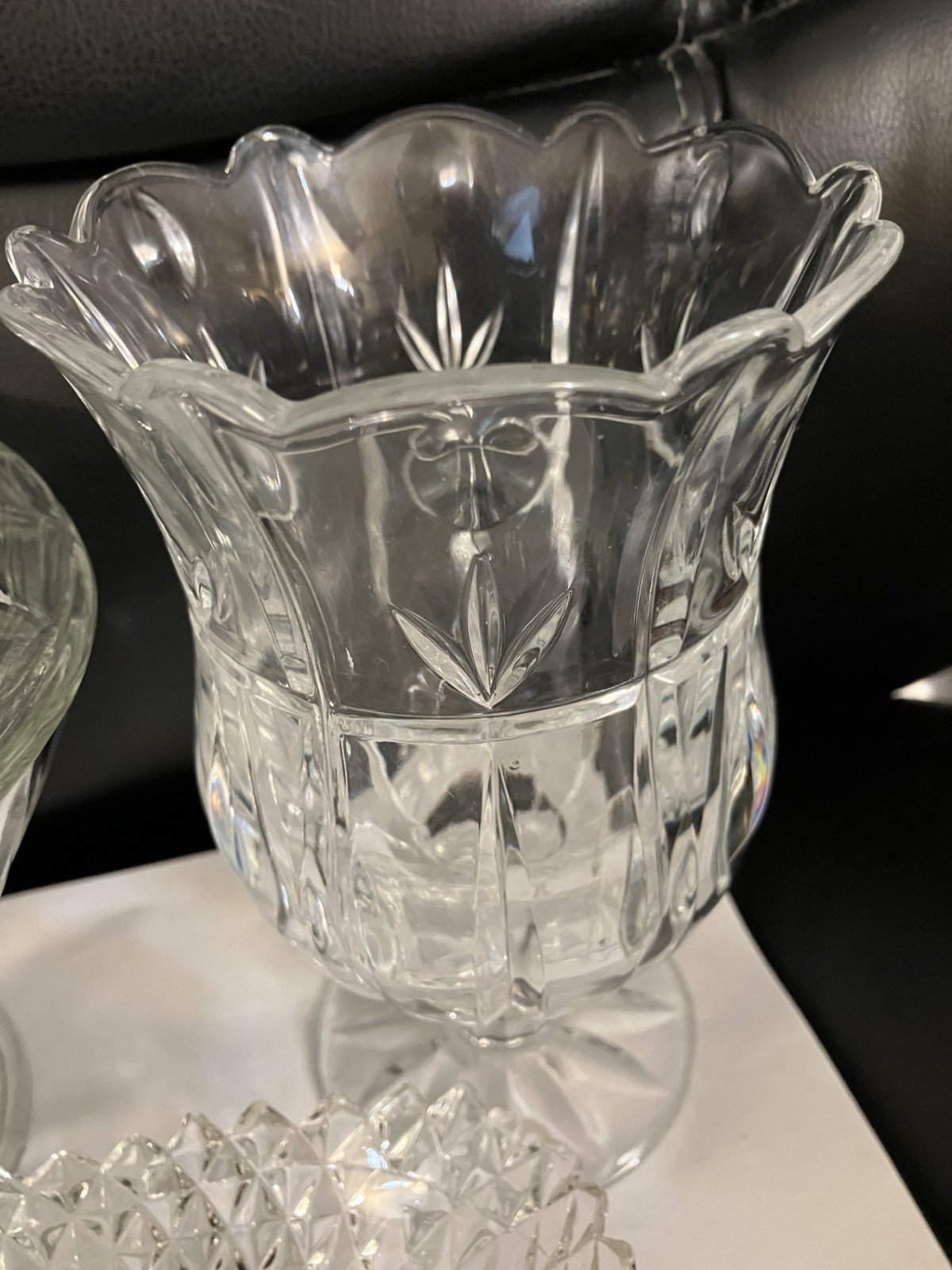 Lot of 3 Crystal candy dishes. The taller 7" on the right of the main photo is heavy.