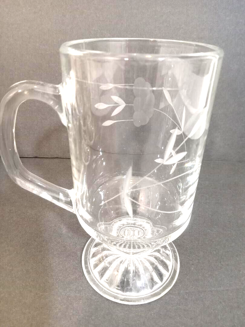 Drinking Pedestal Glasses Clear Floral Print Design Handles 6 Inch 1 Glass Flaw *** Item Specifics *** Brand - Unbranded Condition - *** Pre-Owned *** Excellent Condition *** 1 Glass Has Cut In Glass Around The Rim *** Look At Pics Type - Drinking Glasses Color - Clear Size - 6" inch Material - Glass Style - Classic Pattern - Solid Care - Hand Or Machine Washable Made In - Unknown Height - 6" Inch PLEASE READ CAREFULLY !!! *** All Photo's Are Of The Actual Item(s) That You Will Receive Guaranteed *** *** Please Inspect Your Items That You Receive To Assure That They Arrived Safely *** We Ship From The U.S ***(1 Or Same Day Handling Time) If Item(s) Are Purchased On Or Before 1 PM EST Your Item(s) Will Be Shipped The Same Day Of Purchase.. We Offer FREE 30 Day Money Back Guarantee Returns On All Items ... UNDAMAGED Unless Its The Carriers Fault Please Contact Us In A Timely Manner Of Any Issue.. Thank You For Stopping By And Have A Great Day!! HAPPY AND SATISFIED CUSTOMERS ARE OUR # 1 PRIORITY !!!