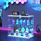 Clear Glass Display Case with LED Lights and Charging Station for Figures, Black