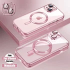 The Clear Magnetic Case iPhone 16 15 14 13 12 11 Pro Max Magsafe Lens Film Cover is a back case designed for Apple iPhones. It features a plain and transparent design finish, making it lightweight and water-resistant. The case is equipped with magnetic and wireless charging capabilities, making it convenient to use. It is shockproof, anti-scratch, and anti-fingerprint, providing protection for the phone. The case is compatible with various iPhone models and has a matte/anti-glare feature for added style and functionality.