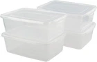 et of 4 clear bins, with latching lid Dimensions: 15"L x 10.5"W x 5.1"H (14 Qt) These box not only as food containers, storage bin, also can as shoes box Clear color allows you to easily identify contents Suitable for kitchen storage, can store snacks, also be stored in the refrigerator as a food container.
