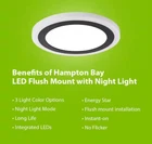 About This Product Add function and beauty to any residential or commercial area with this Hampton Bay FP13/3CCT/NL/HD 13 in. integrated LED round flat panel ceiling fixture. Use the switch on the back of the fixture to preselect the color temperature to meet your needs. You can select the color of the light, choosing between warm 3000K (soft white), clean crisp 4000K (bright white) or bright 5000K (daylight). After install, with a simple flip of a standard light switch you can easily toggle between your preselected light color and the amber night-light glow. An ultra-slim, edge-lit design with white polycarbonate lens and a decorative black ring to separate the daily light and night light. This energy-efficient fixture has long-lasting integrated LEDs, meaning no bulbs to replace, uses only 16-Watt of electricity and up to 79% less energy than a standard incandescent light bulb and produces even light distribution of 1300 Lumens. The streamlined design of these LED flat panels combined with an easy-to-install mounting bracket enables simple installation in both residential and commercial buildings. This easy to install light fixture has an average life of 50,000-hours/45.7-years, can be mounted as a ceiling flush mount and delivers ENERGY STAR approved dimmable lighting. Uses only 16-Watt Brightness: 1300 Lumens Flush mount ceiling installation Switch between regular light and night light modes after install Preset color temperature before install to soft white, cool white or-daylight Dimmable Instant on to full brightness Twist and lock simple mounting bracket ENERGY STAR listed Junction box compatible