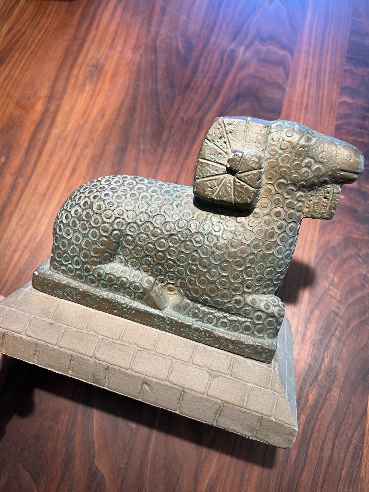 Signed C. Hartwig Ram statue Clay pottery with a bronze style finish No chips. No damage. No repairs. Slight wear on corners very minor. I didn’t want to touch it up. Honest Seller. I’ve had this for a very long time. NYC Artist Goes well with mid century modern eames interiors. Measures 8x7x4.5 inches