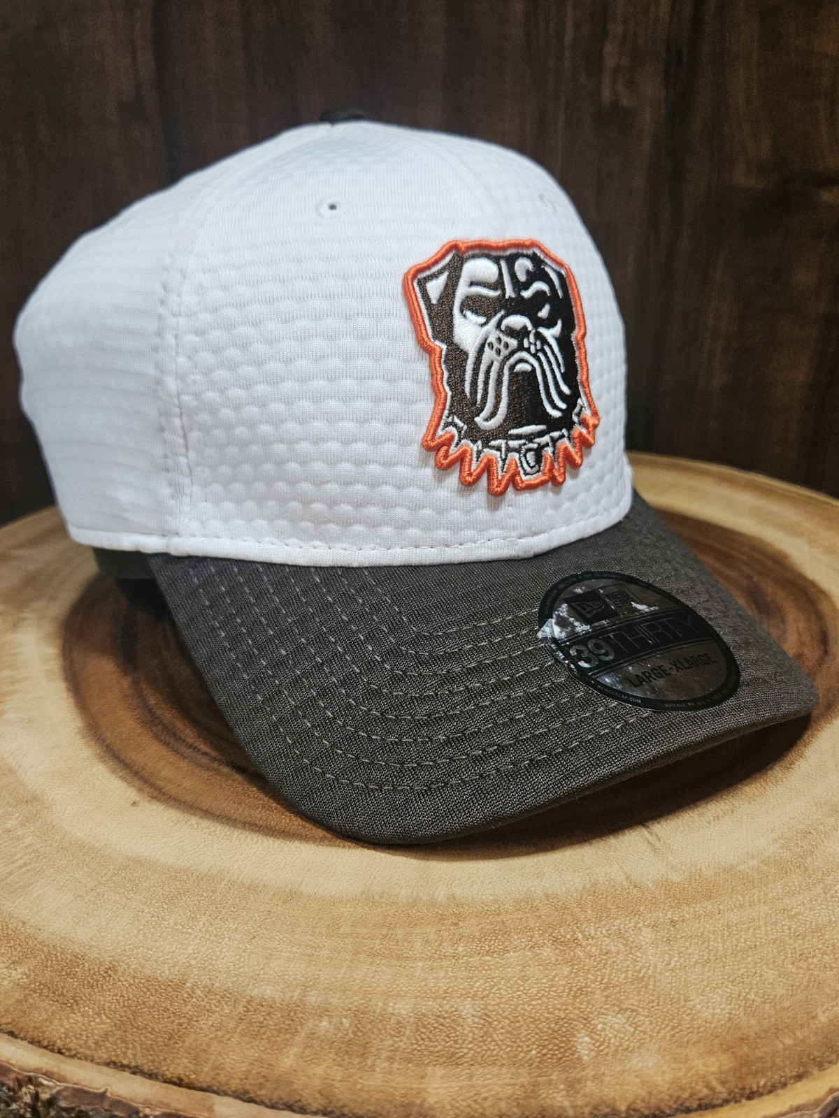 Elevate your sports wardrobe with the Cleveland Browns New Era 39Thirty Stretchfit Hat. Designed for the ultimate fan, this cap features the iconic Dawg Pound logo, providing a bold statement of team pride. Its solid white color offers a crisp, clean look that easily pairs with any outfit, making it a versatile choice for various occasions from a casual day out to a business setting. The hat comes in a size L/XL with a comfortable stretch fit that ensures a secure and adjustable fit throughout the day. Ideal for both travel and football game attendance, this baseball cap also adds a touch of style to your workwear or party cocktail attire. Show off your love for the Browns and NFL football with this essential piece of streetwear.