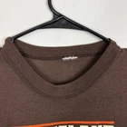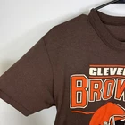 Vintage NFL CLEVELAND BROWNS brown T-SHIRT single stitched fits around size small. Condition: good Preowned, no stains. Has a few tiny holes on the front. See pictures. Size tag is missing, but fits around size small. Measurements are 18” armpit to armpit and 26” collar to front. Shipped with USPS ground advantage.